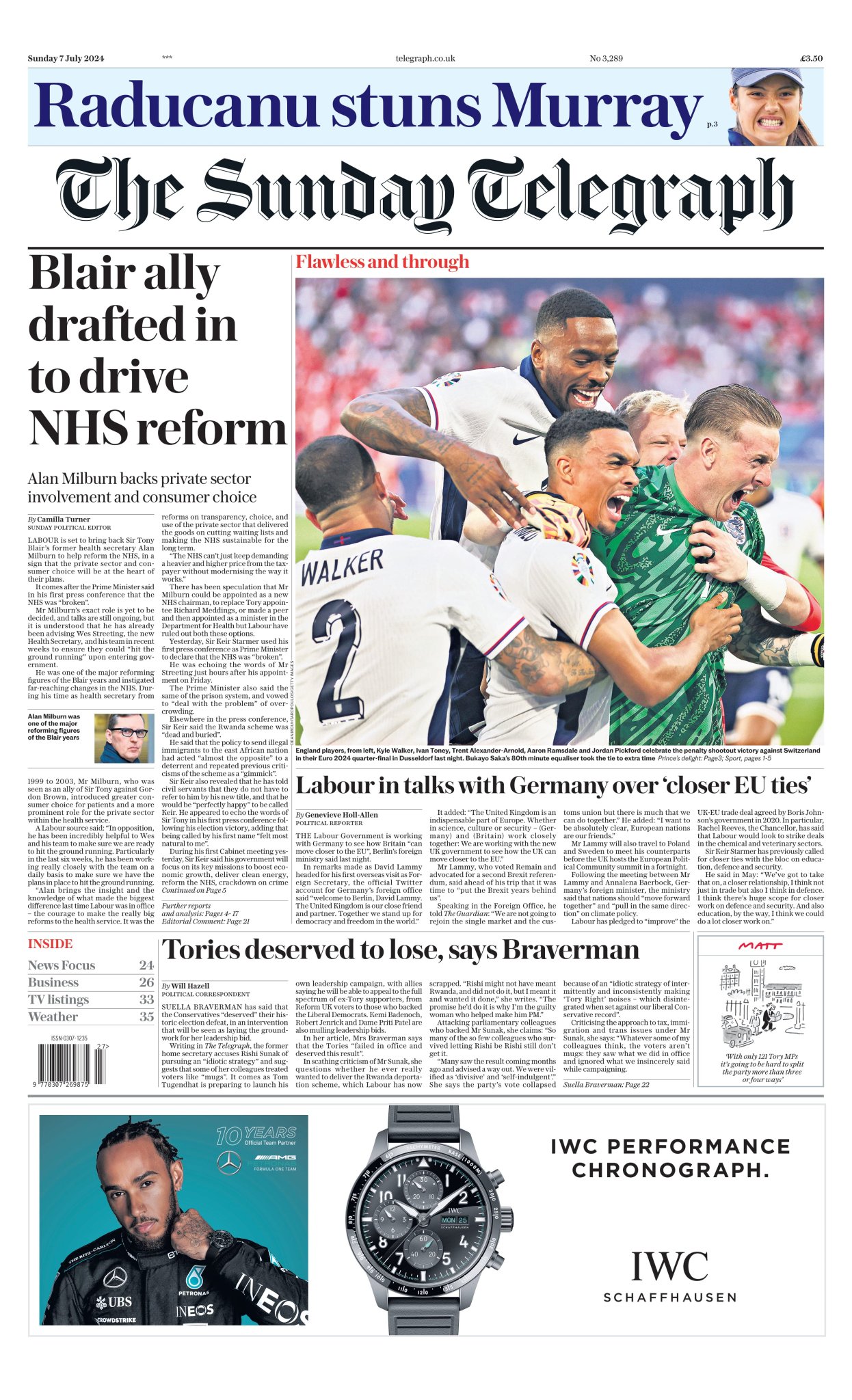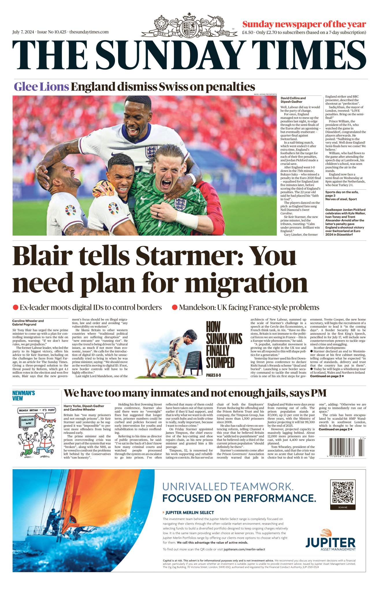 Sunday Times Front Page 7th of July 2024