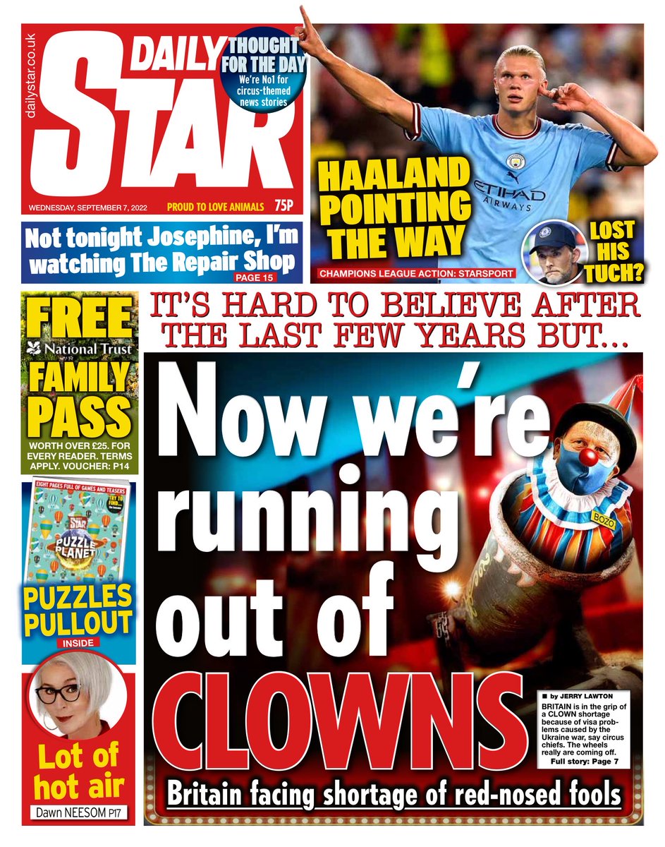 The Daily Star reports that visa problems caused by the Ukraine war have caused a “clown shortage” in Britain.
