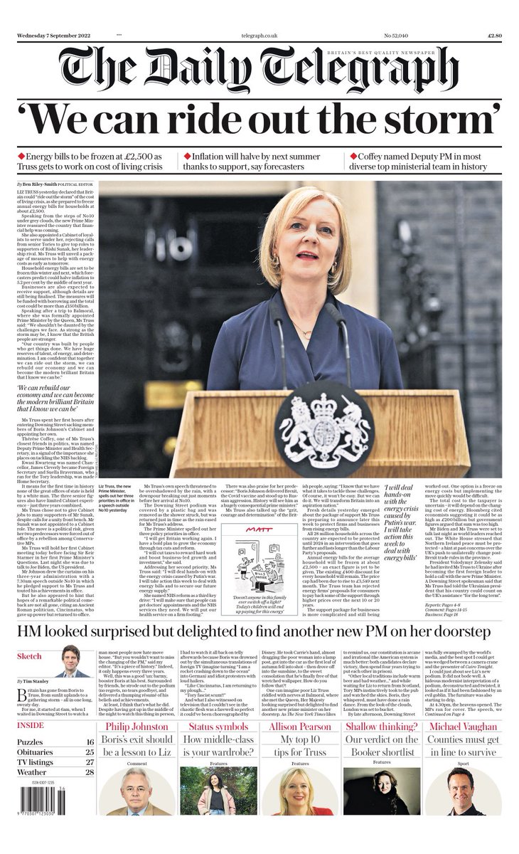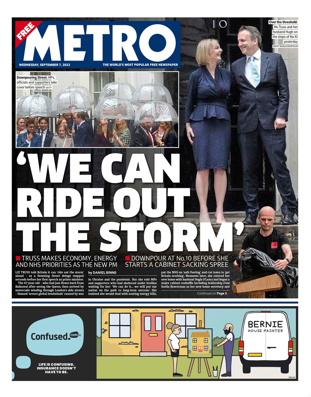 Daily Express reports Liz Truss predicts Britain can “ride out the storm” with a swift freeze on energy bills as part of a massive cost-of-living rescue package.