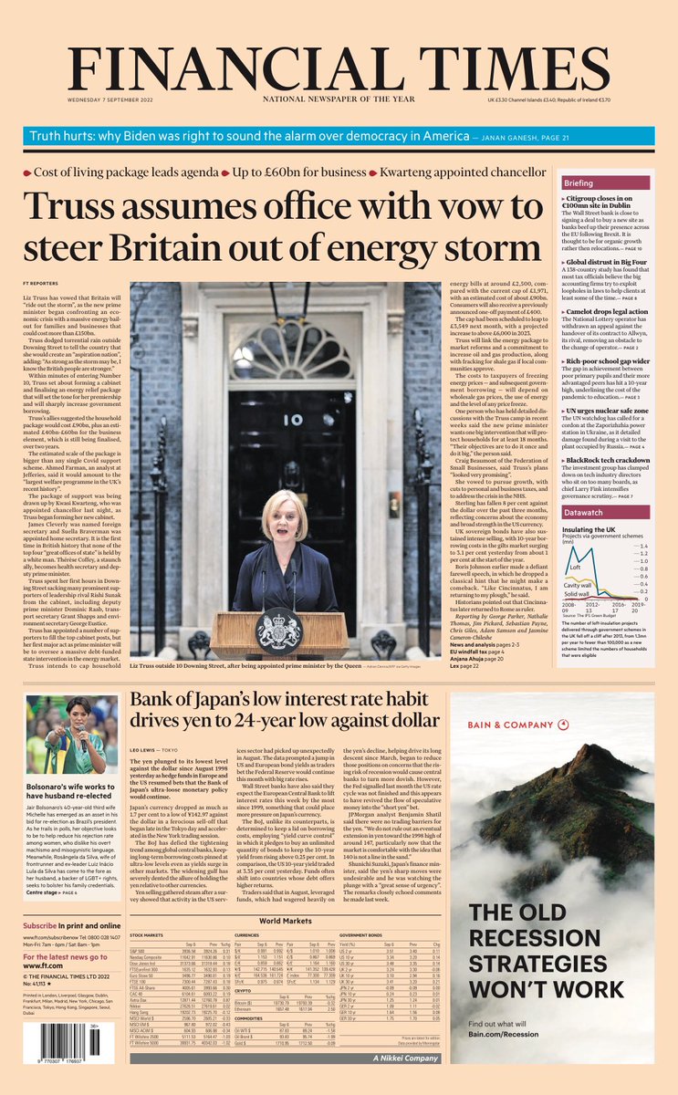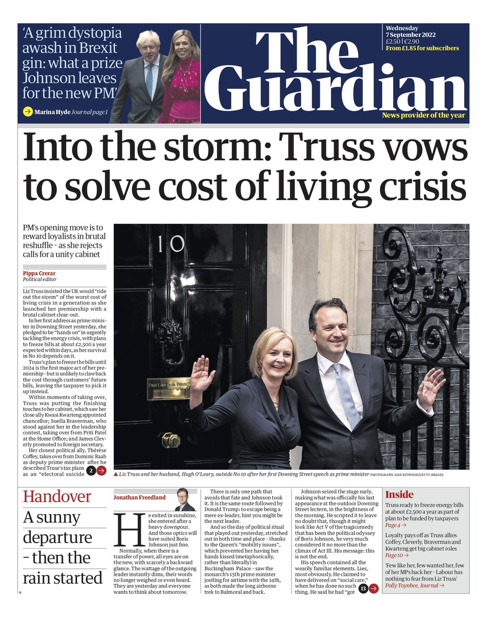 After launching her premiership with a brutal cabinet clear-out, Liz Truss said the UK would “ride out the storm” of the worst cost of living crisis since the 1970s.