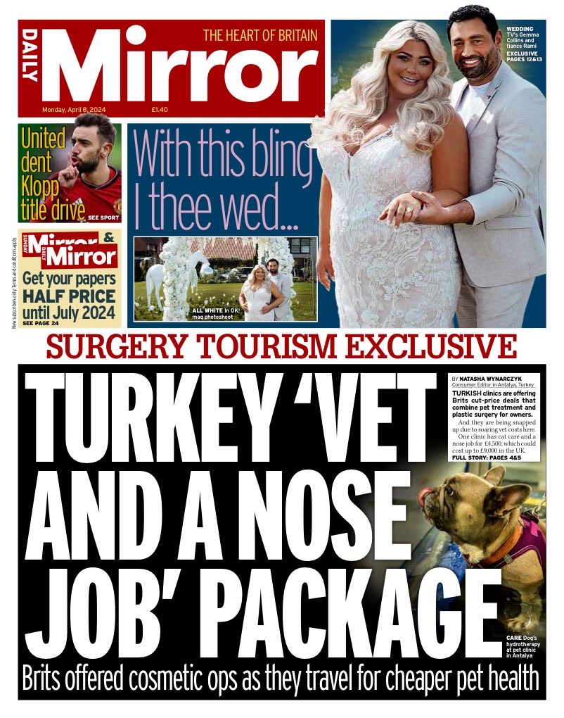 The Daily Mirror highlights the affordability of Turkish clinics’ plastic surgery and pet care packages compared to UK prices.