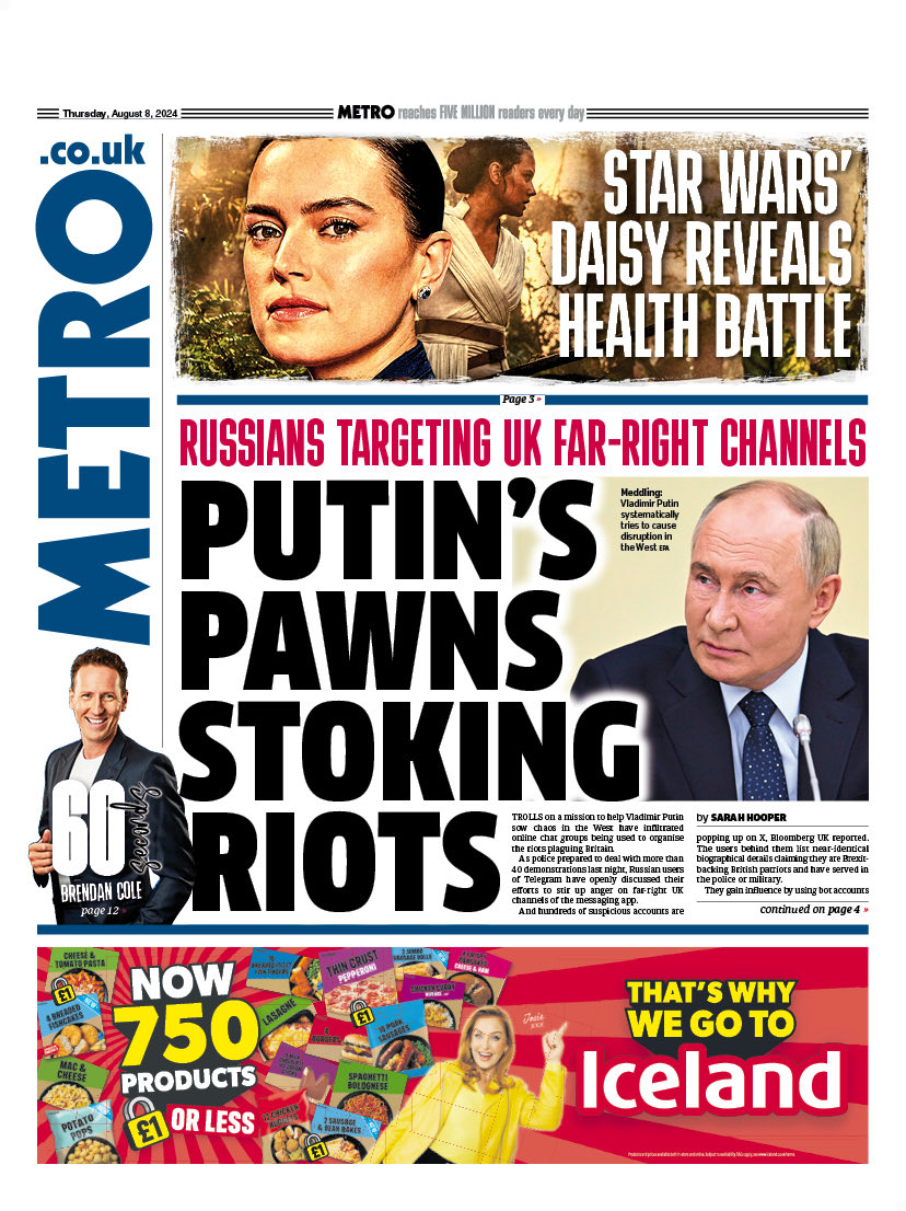 Russian operatives are allegedly targeting UK far-right channels with the intention of organising and inciting riots across Britain, as part of efforts to destabilise the West.