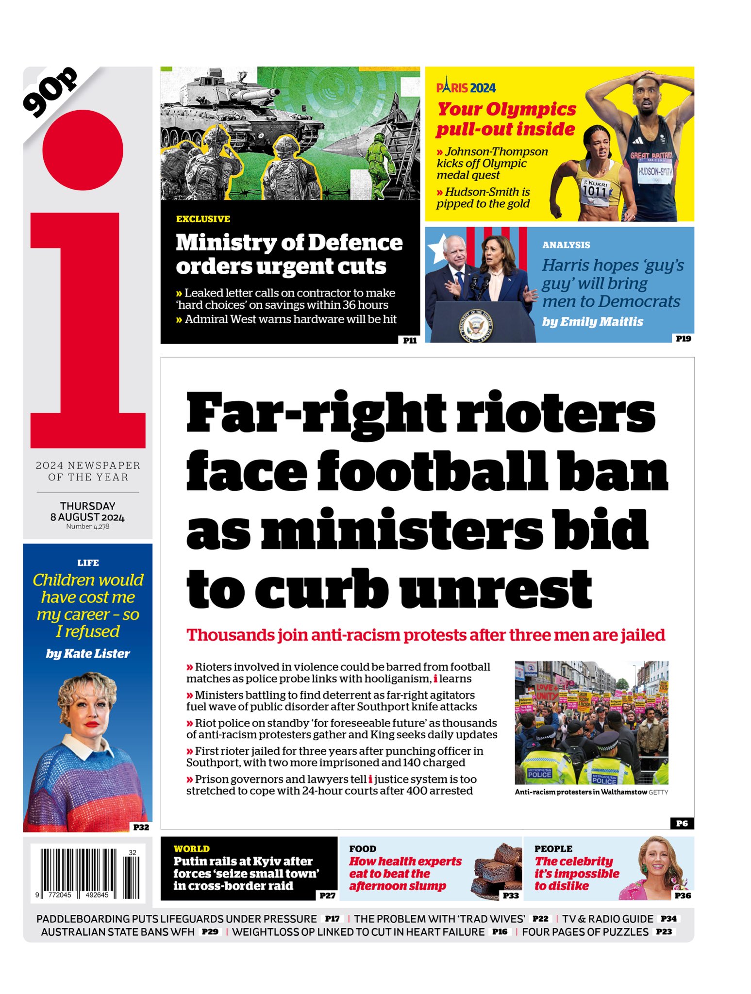 The Daily Express reports on the thousands of anti-racist demonstrators who marched amid concerns of potential far-right riots tonight.