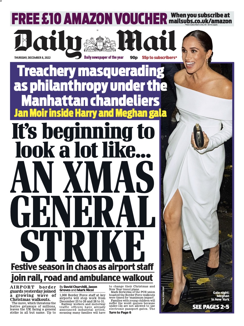 The Daily Mail reports that airport staff have joined rail, road, and ambulance workers in striking around Christmas.