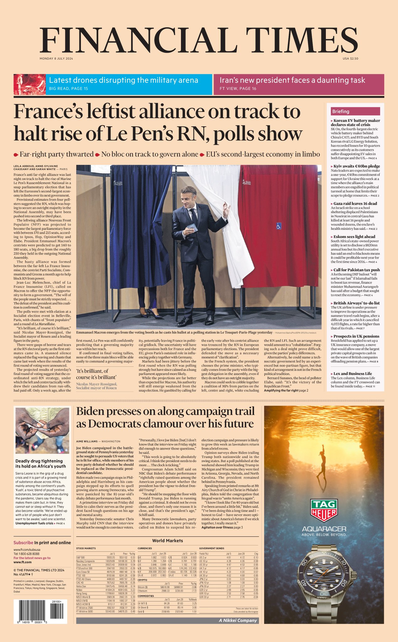 The Independent reports that France has decisively rejected the far right, dealing a significant blow to Marine Le Pen’s ambitions.
