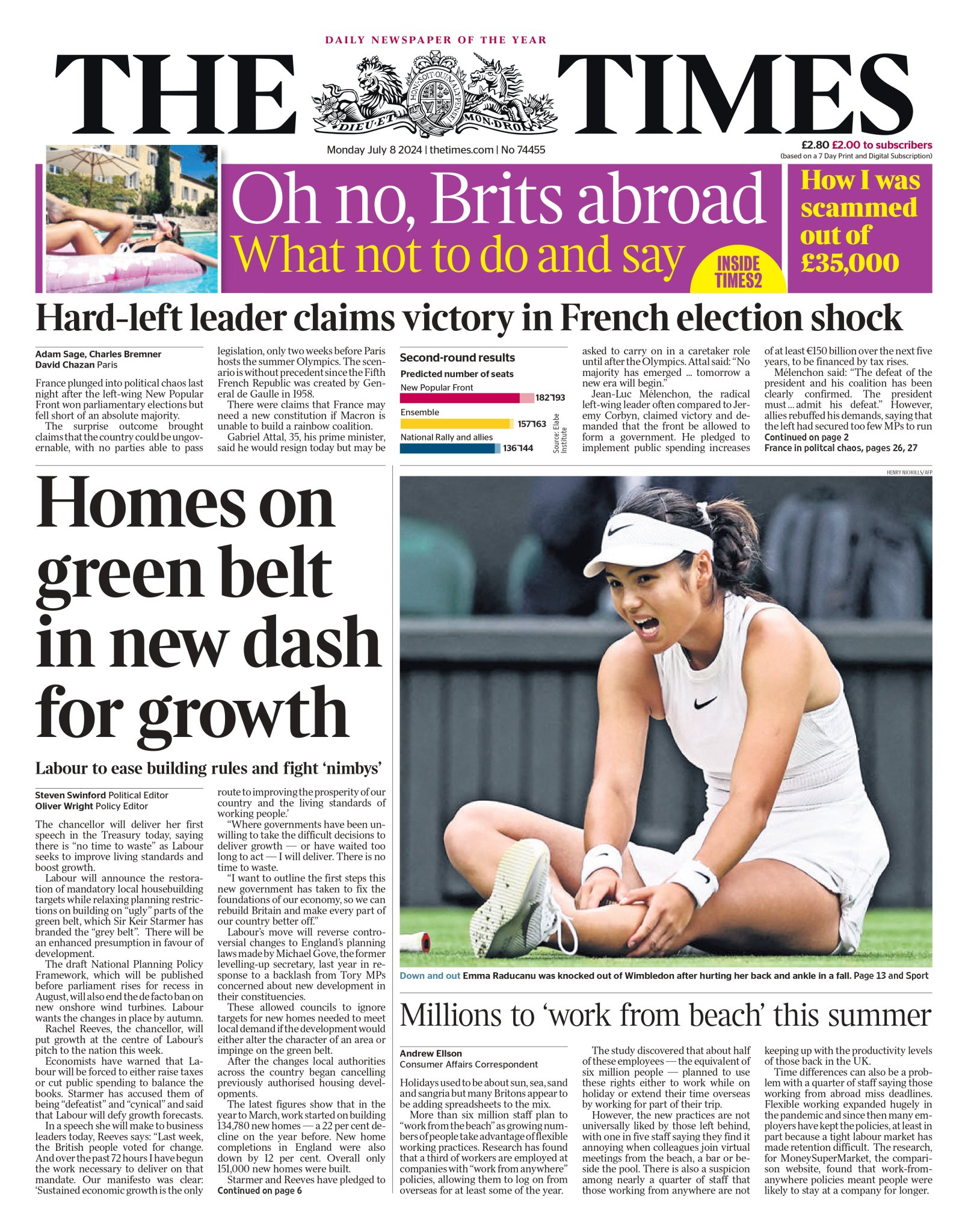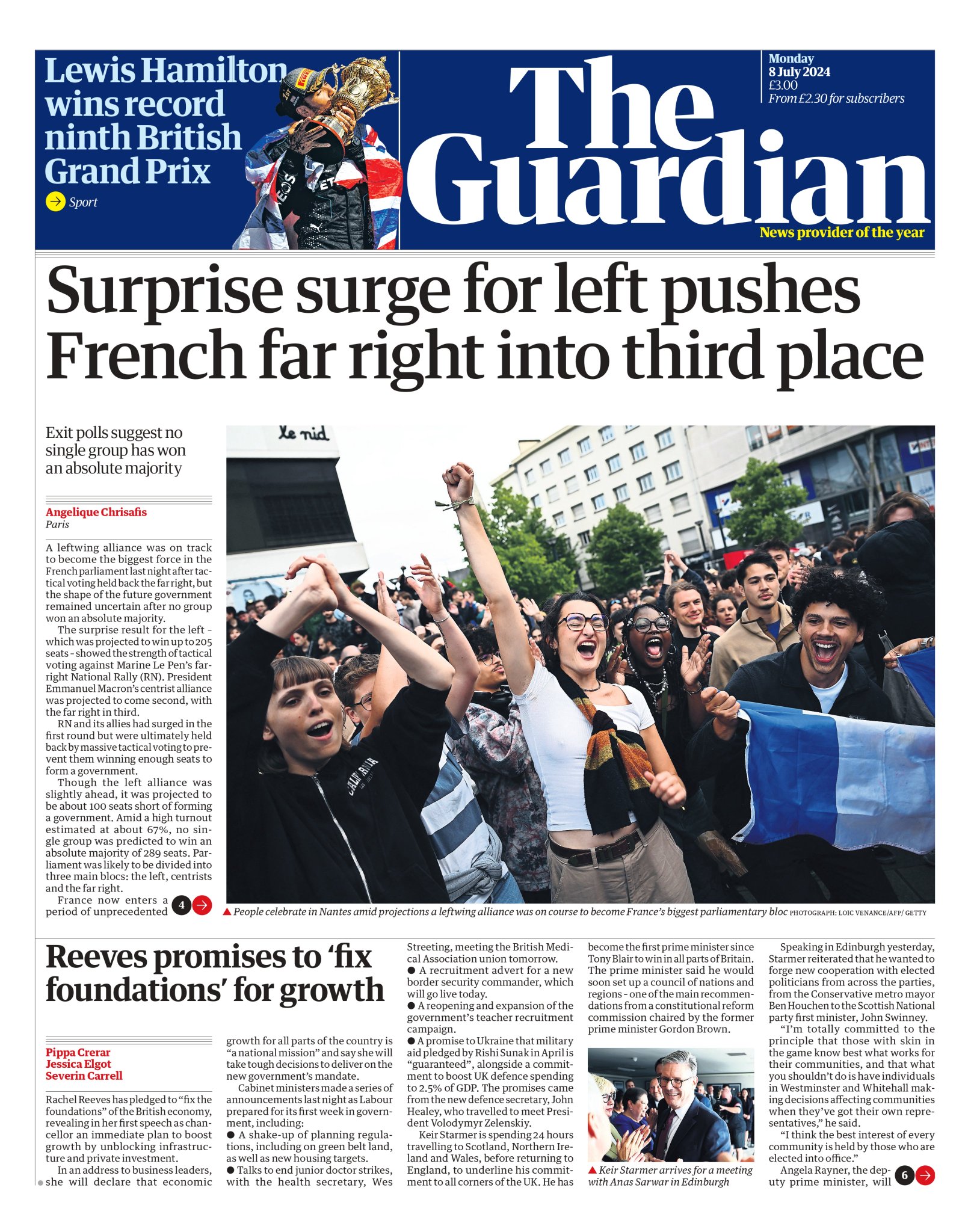 France has entered a political crisis as the radical left-wing New Popular Front emerged victorious in the parliamentary elections, with no party securing an absolute majority and speculation of a new constitution under President Macron intensifying.