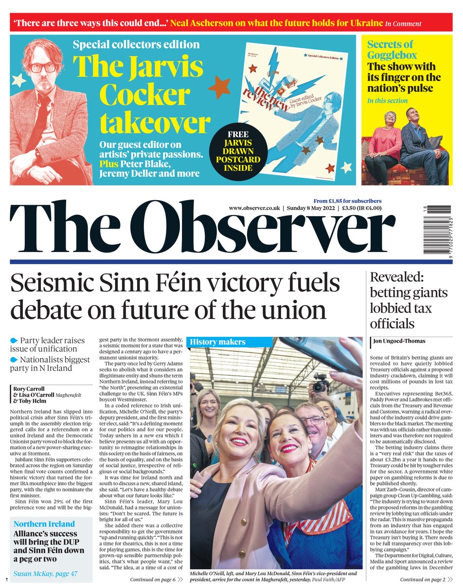 Sinn Fein’s victory in Northern Ireland has sparked debate about the future of the union, according to the Observer.