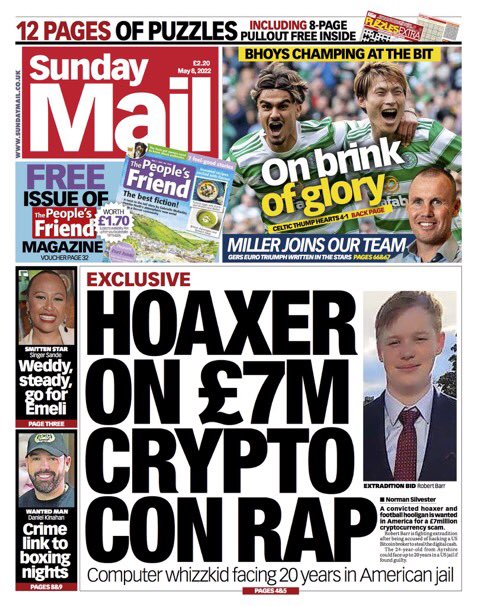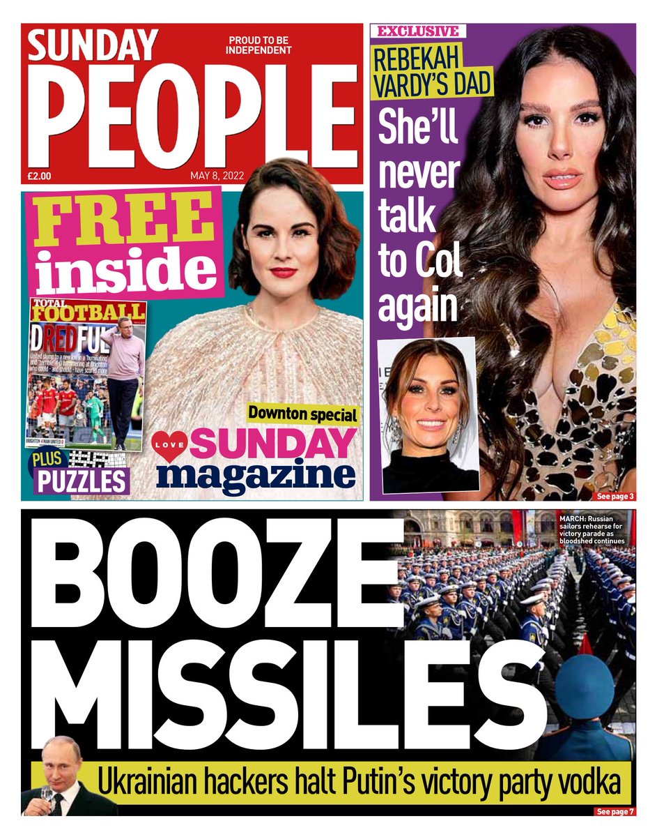 The Sunday Mirror’s front page reports that Ukrainian hackers halted Putin’s victory party vodka.