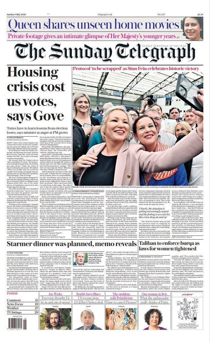 In the Sunday Telegraph, MP Michael Gove claims the Conservatives lost votes in local council elections because of the housing crisis.