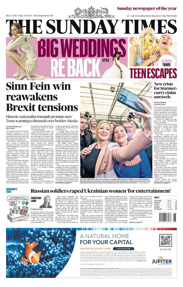 The Sunday Times reports that Sinn Fein’s victory in Northern Ireland has re-awakened Brexit tensions.