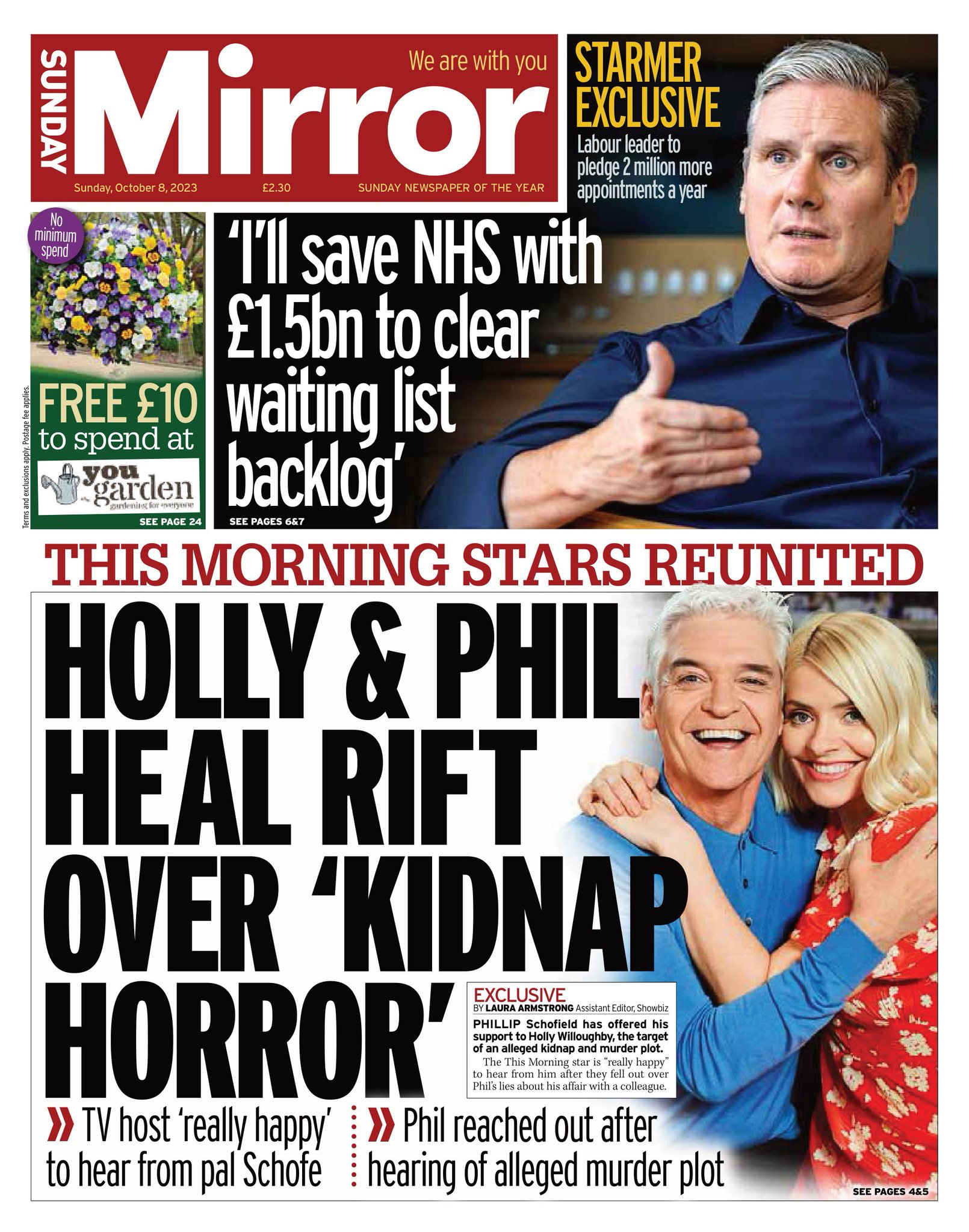 The Sunday Mirror reports on the mended relationship between Holly Willoughby and Phillip Schofield following her kidnap and murder plot ordeal.