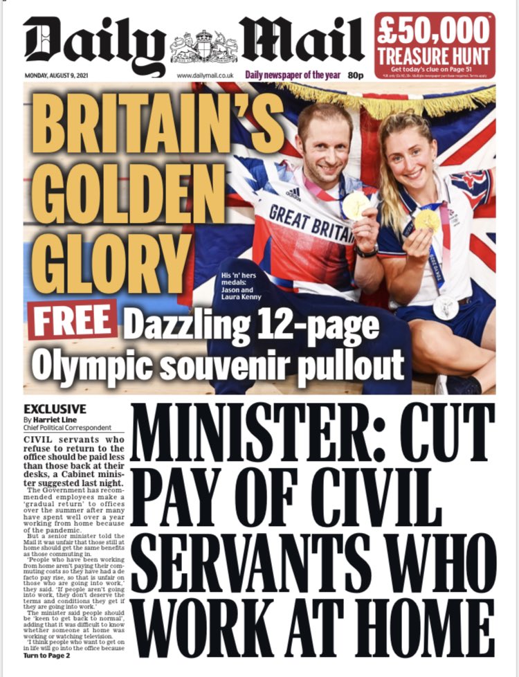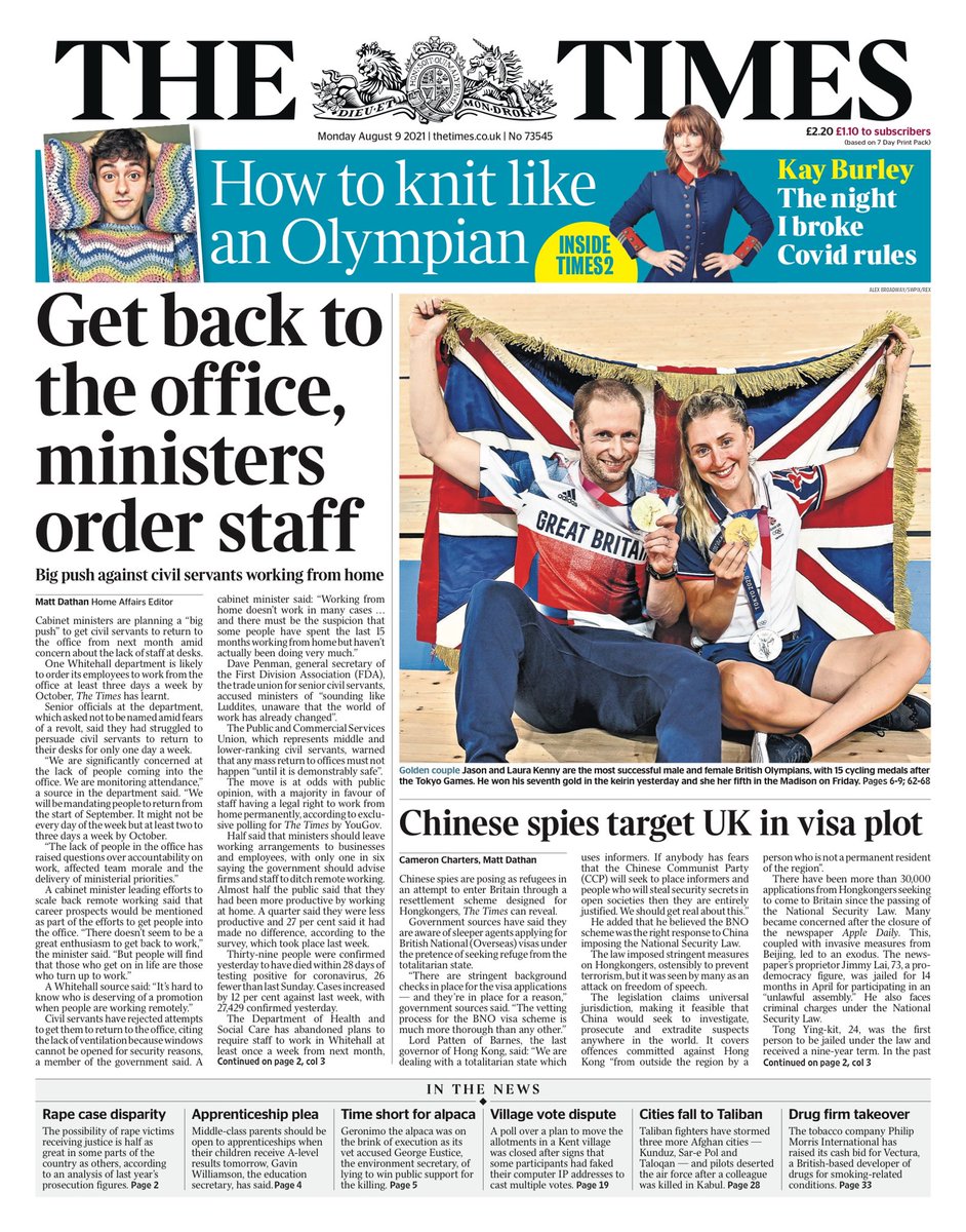 The Times writes cabinet ministers are planning a ‘big push’ to get civil servants to return to the office from next month amid concern about the lack of staff at desks.