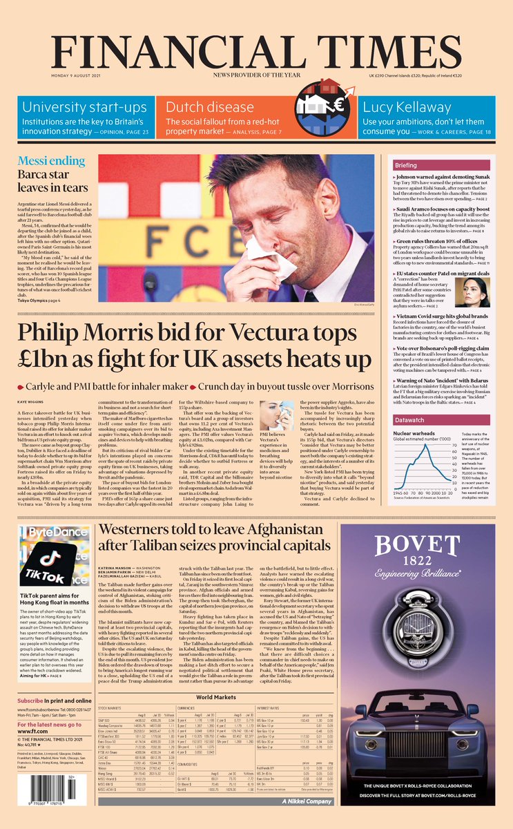 Tobacco group Philip Morris International has raised its offer for inhaler maker Vectura in an effort to knock out a rival bid from a US private equity group, says the Financial Times.