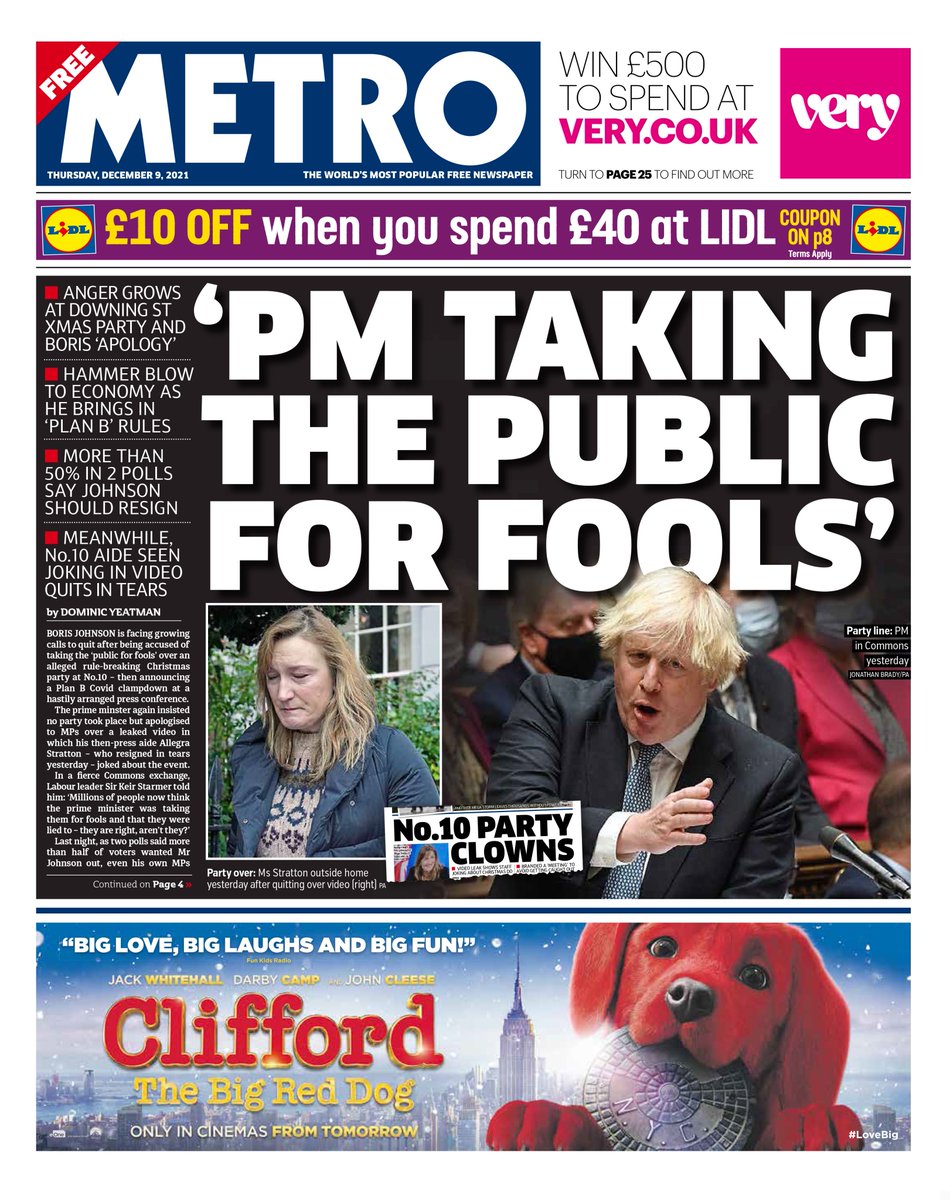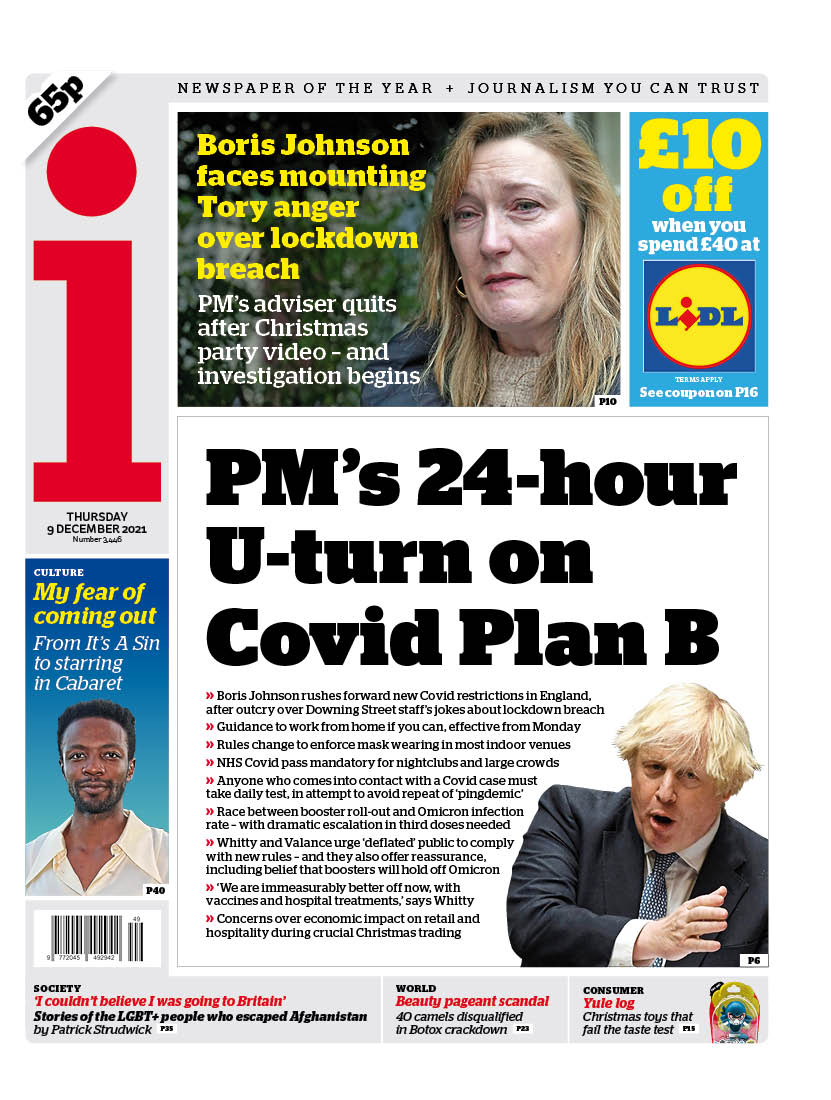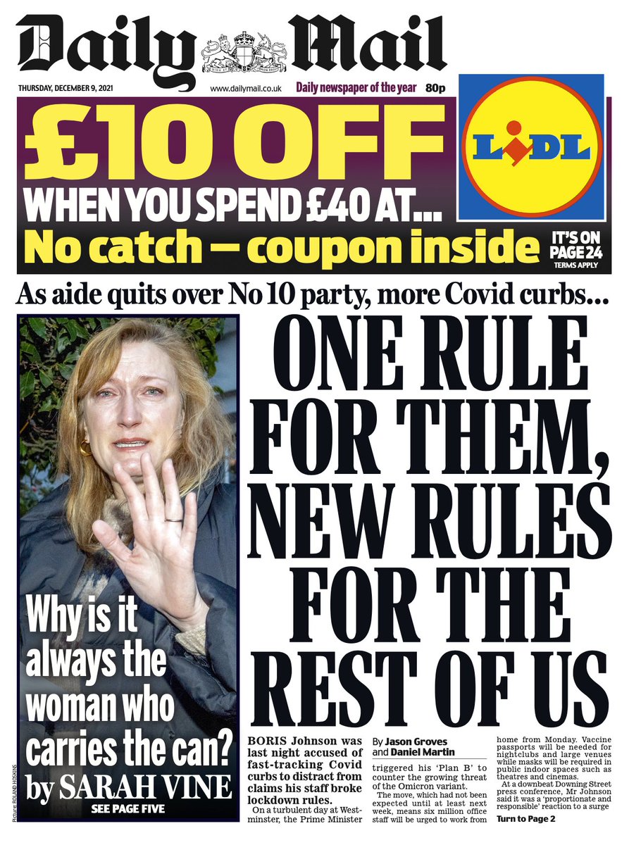 Boris Johnson brought in tighter Plan B restrictions while “desperately trying to dodge the flak for rule-breaking parties at Number 10”, the Daily Mirror reports.