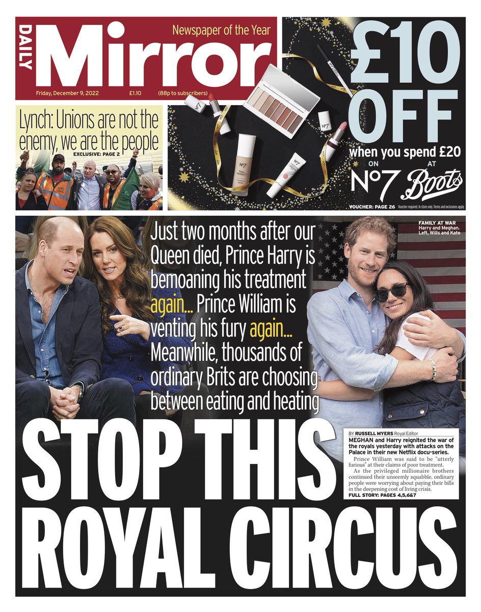 The Daily Mirror’s take on Harry and Meghan’s documentary is to stop this royal circus.