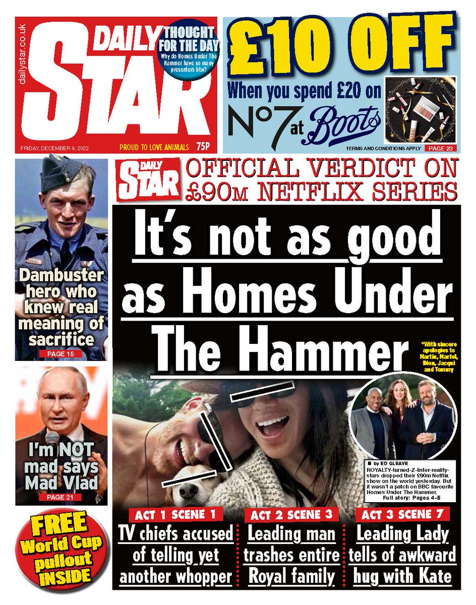 Harry and Meghan’s Netflix documentary wasn’t as good as the BBC’s Homes Under The Hammer, says the Daily Star.
