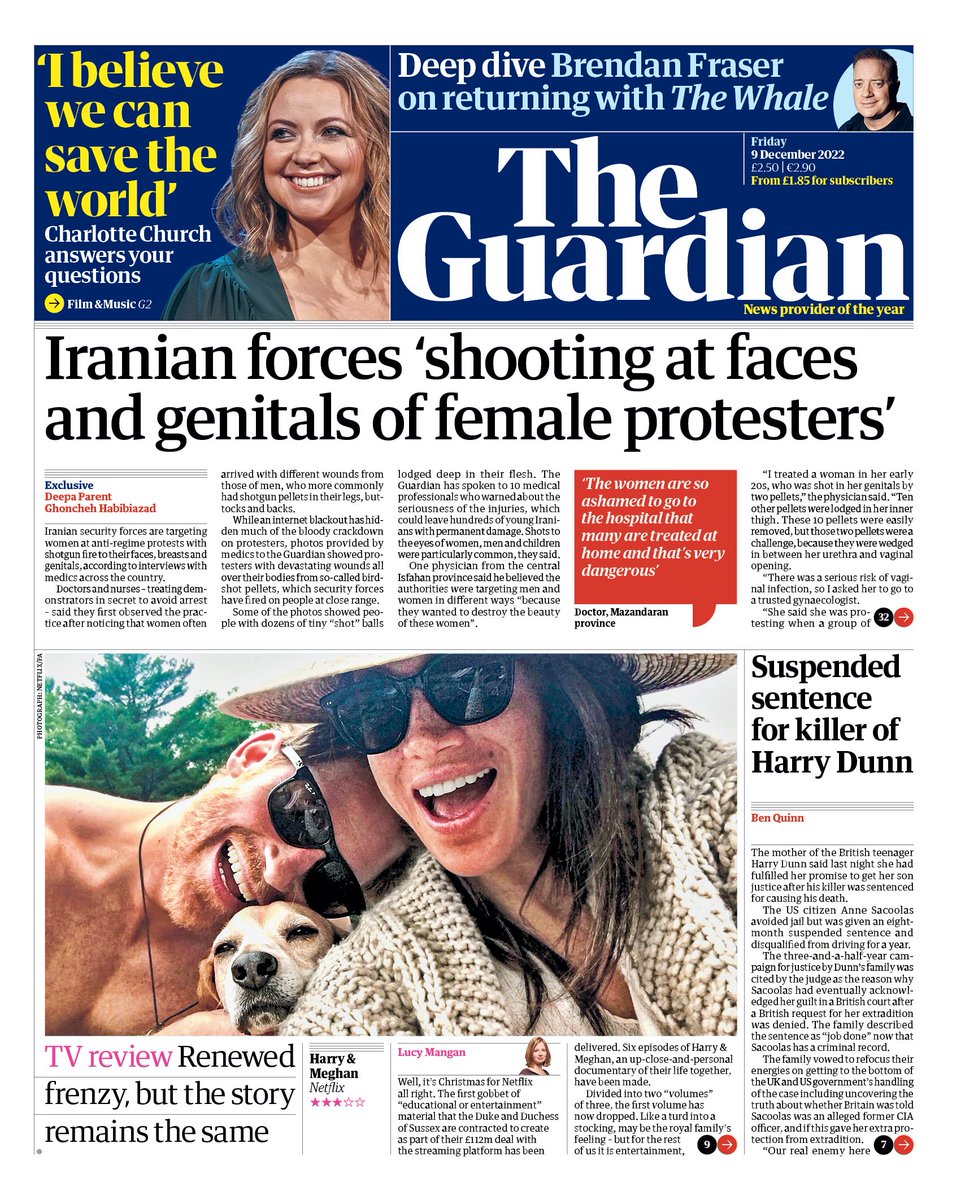 Medical professionals in Iran report that security forces are shooting at female anti-regime protesters, targeting their faces and genitals.