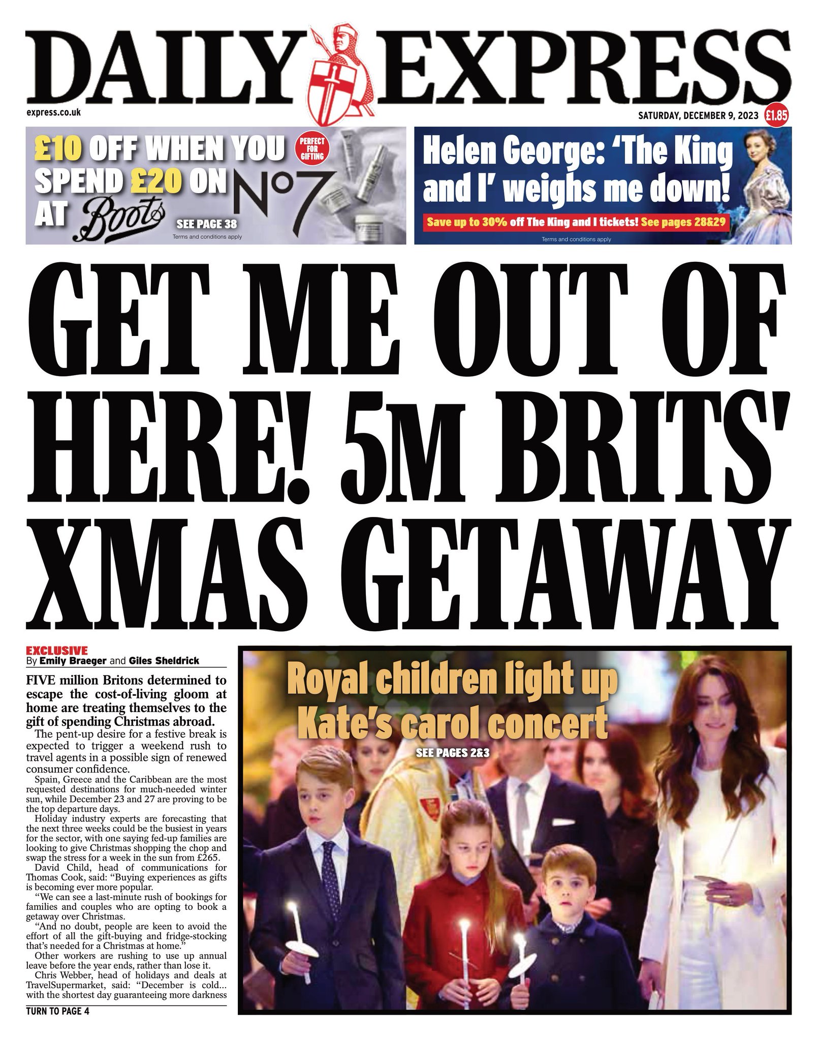The Daily Express reports that five million Britons are planning to spend their Christmas holidays abroad.