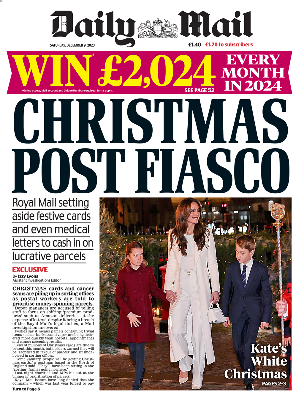 The Daily Mail reports on post depot managers favouring premium deliveries over regular letters.