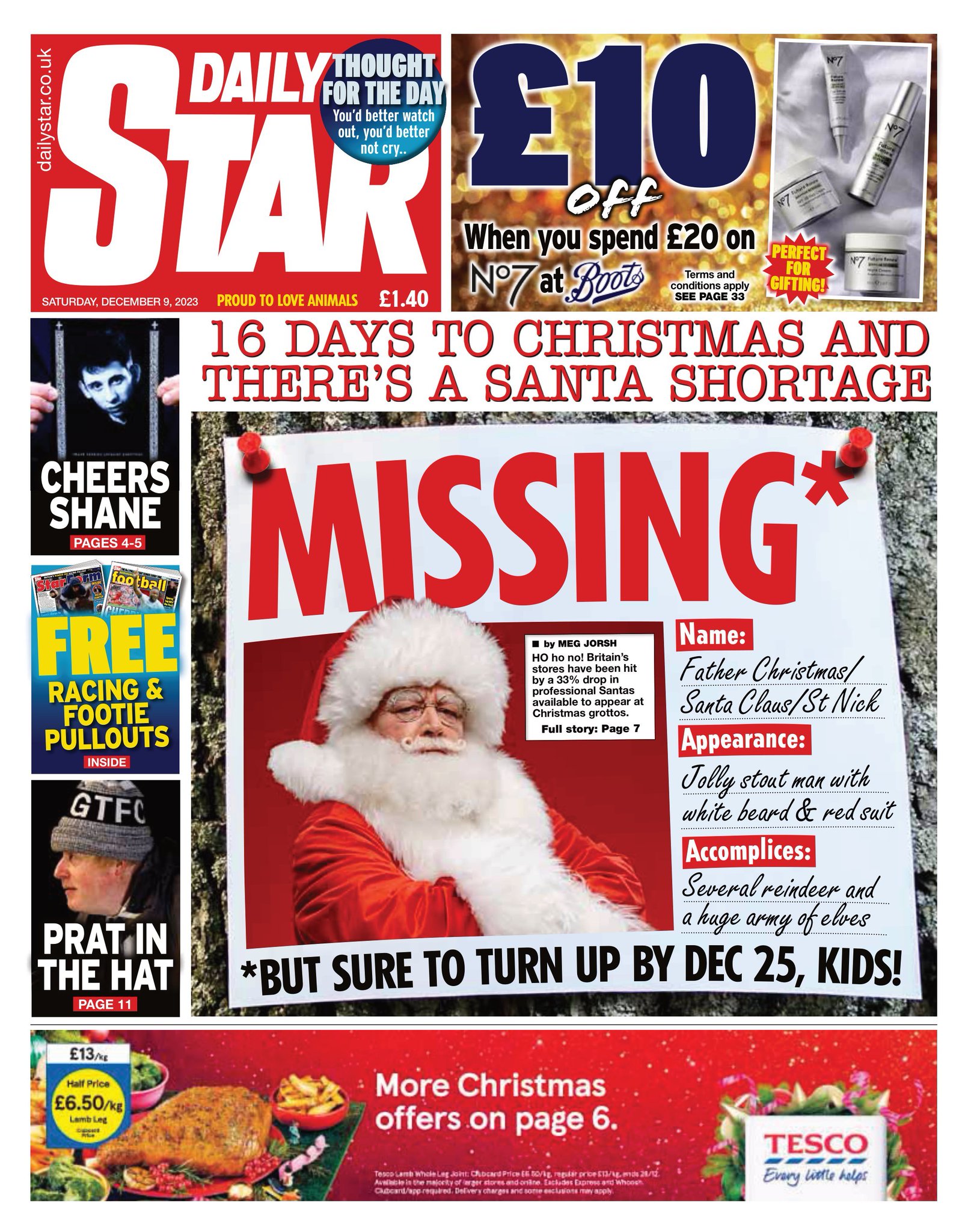 The Daily Star highlights a scarcity of Santas in British shops this festive season.