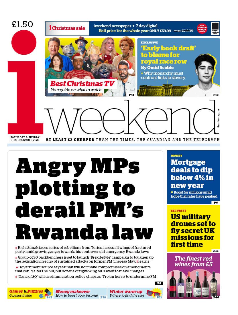 Tory MPs plan to rebel against Sunak’s Rwanda scheme, as reported by The i.
