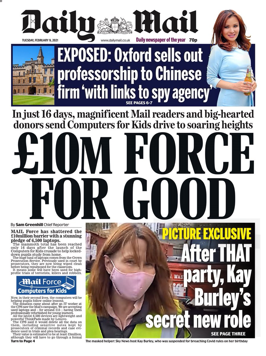 The Daily Mail has a good news story about its campaign to help children study at home by supplying them with laptops.