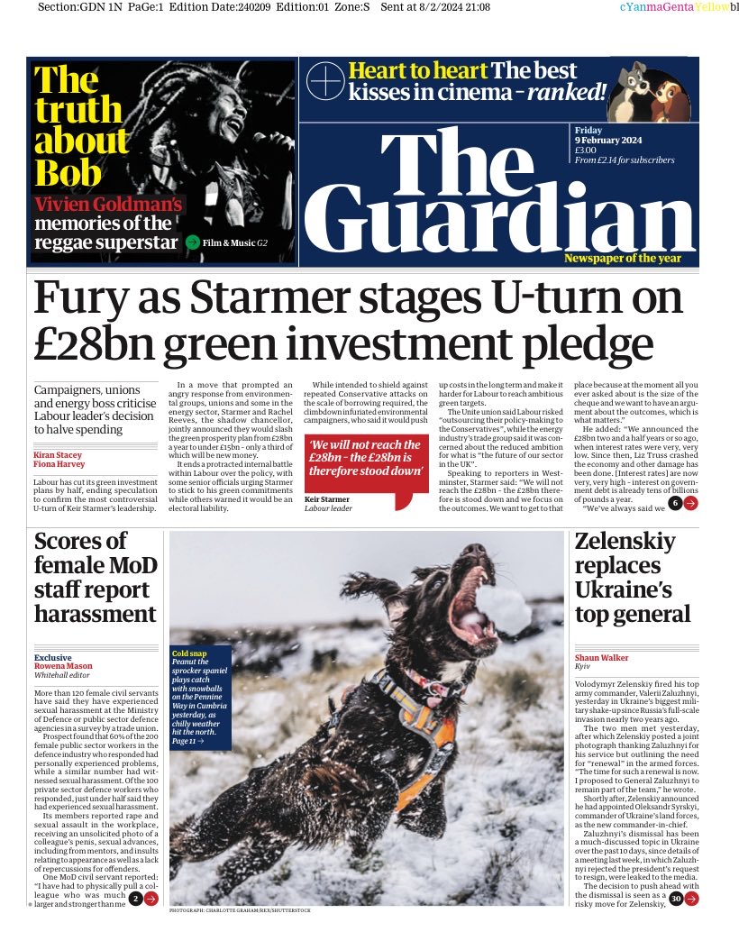The Guardian highlights the anger of campaigners and unions at Sir Kier Starmer’s reversal on his £28bn green investment scheme.