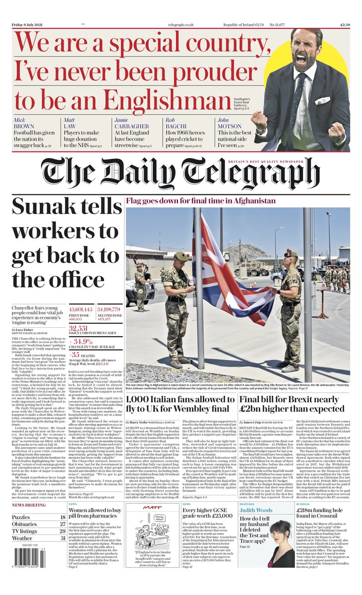 Chancellor Rishi Sunak is rallying Britons to return to the office as soon as the government’s “work from home” guidance lifts, declaring it “really important” for younger staff, writes The Daily Telegraph.