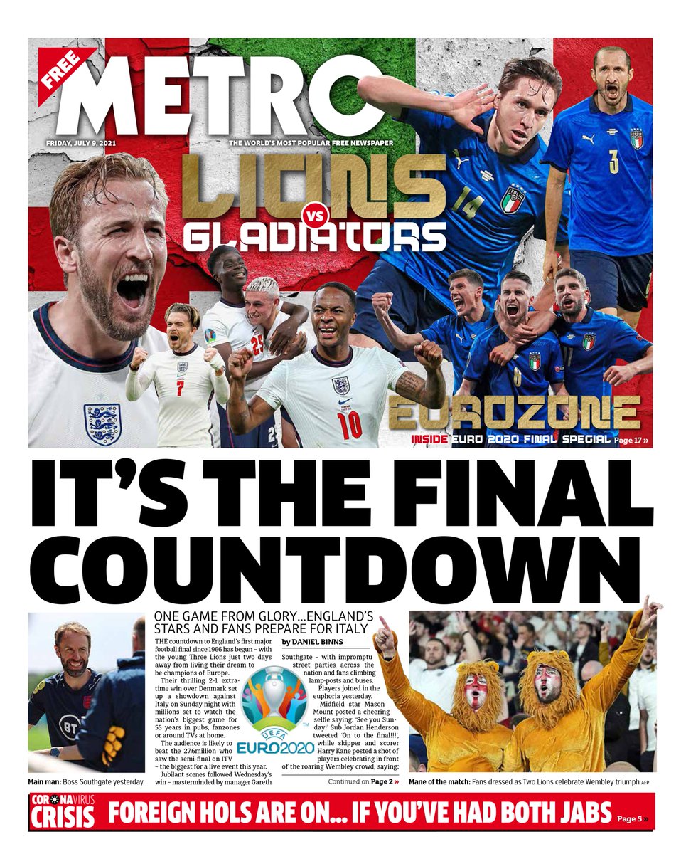 Metro says the countdown to England’s first major football final since 1966 has begun with the Three Lions aiming to be champions of Europe on Sunday.
