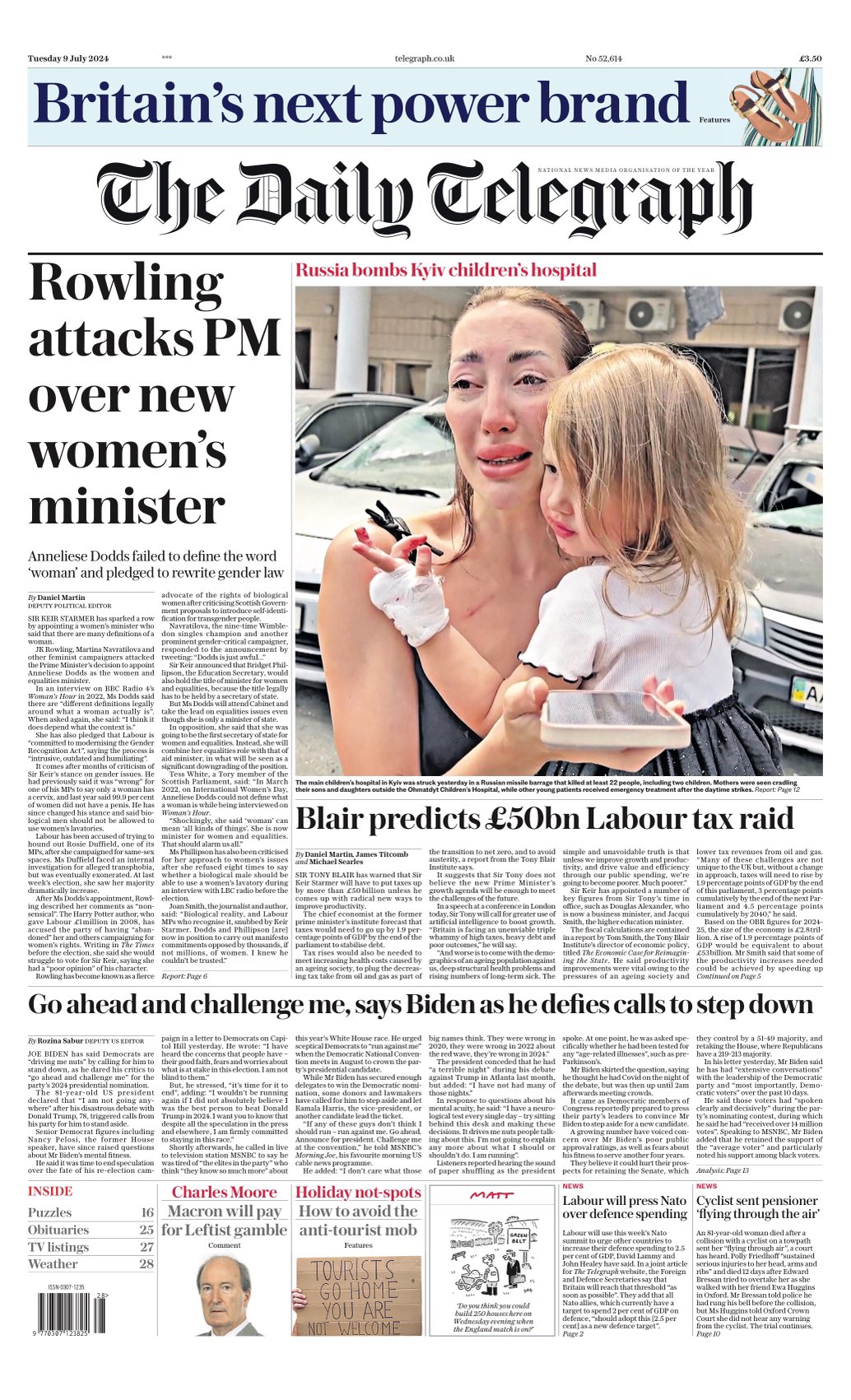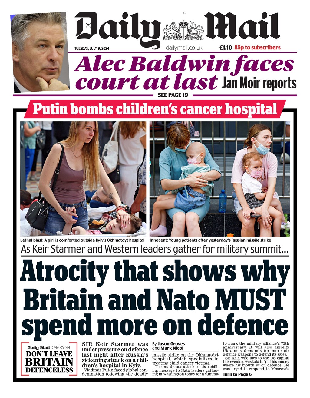 The Daily Mail reports that Sir Keir Starmer faces mounting pressure on defence following Russia’s assault on a children’s hospital in Kyiv.