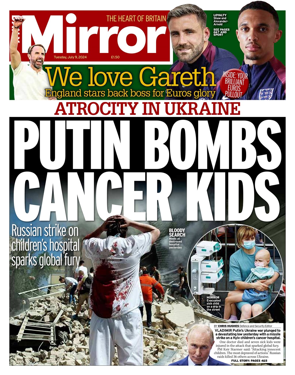 The Daily Mirror reports that Vladimir Putin’s war in Ukraine reached a tragic low on Monday with a missile strike on a children’s cancer hospital in Kyiv.