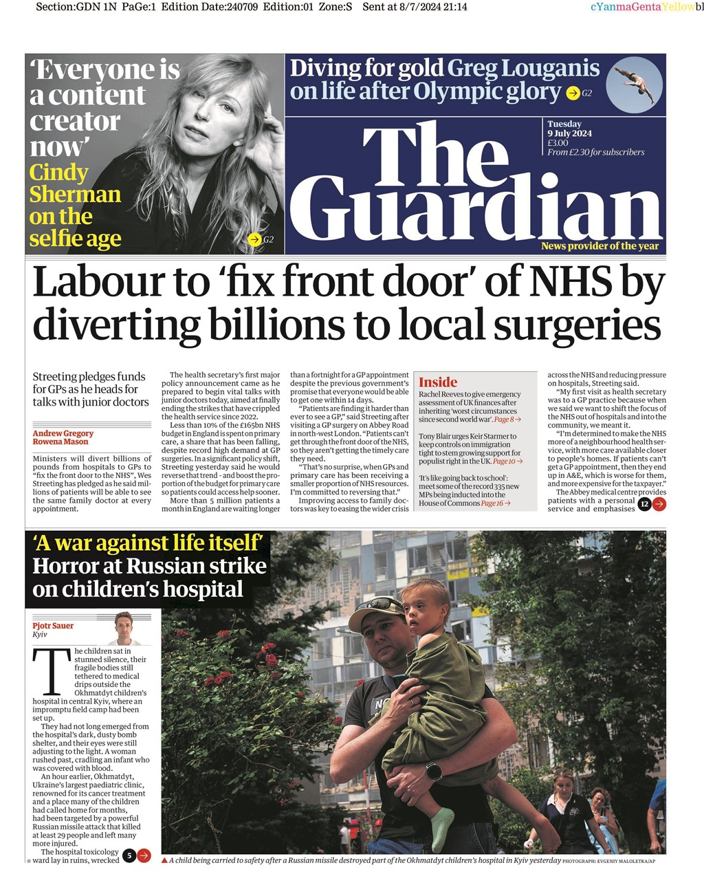 The Guardian reports that Wes Streeting has vowed to reallocate billions from hospitals to GPs, ensuring patients consistently see the same family doctor.