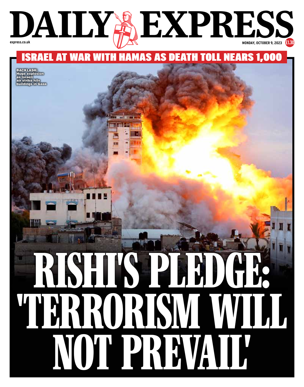 The Daily Express reports on Rishi Sunak’s vow that terrorism won’t triumph amidst Israel’s ongoing conflict.