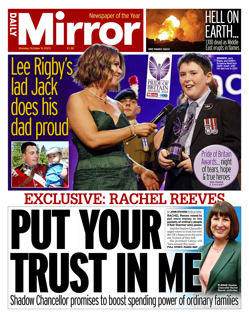 The Daily Mirror highlights Shadow Chancellor Rachel Reeves’ pledge to boost people’s finances.
