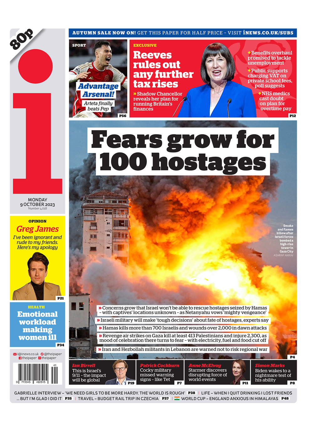 The ‘i’ paper highlights growing concerns for the 100 hostages taken by Hamas following its attack on Israel.