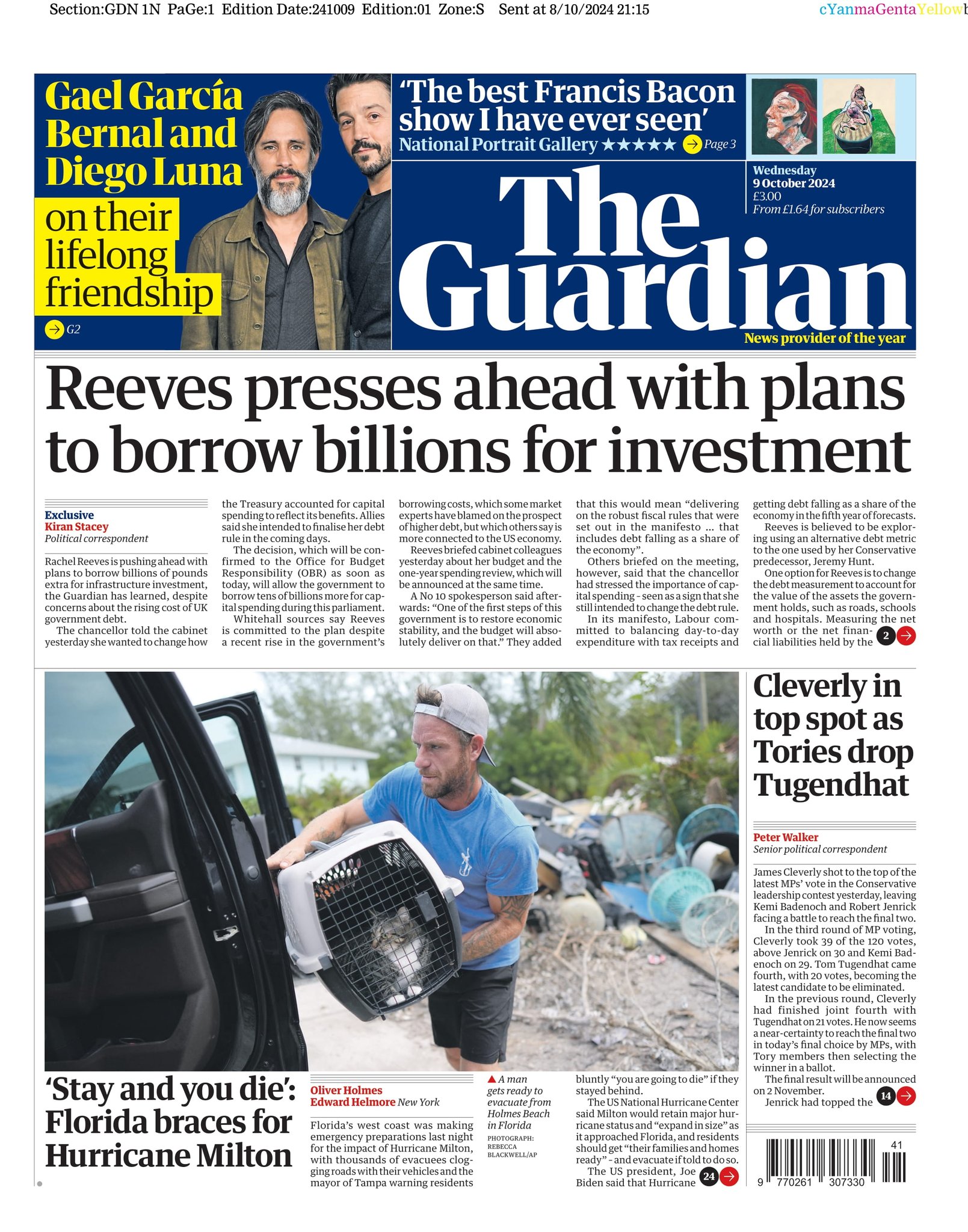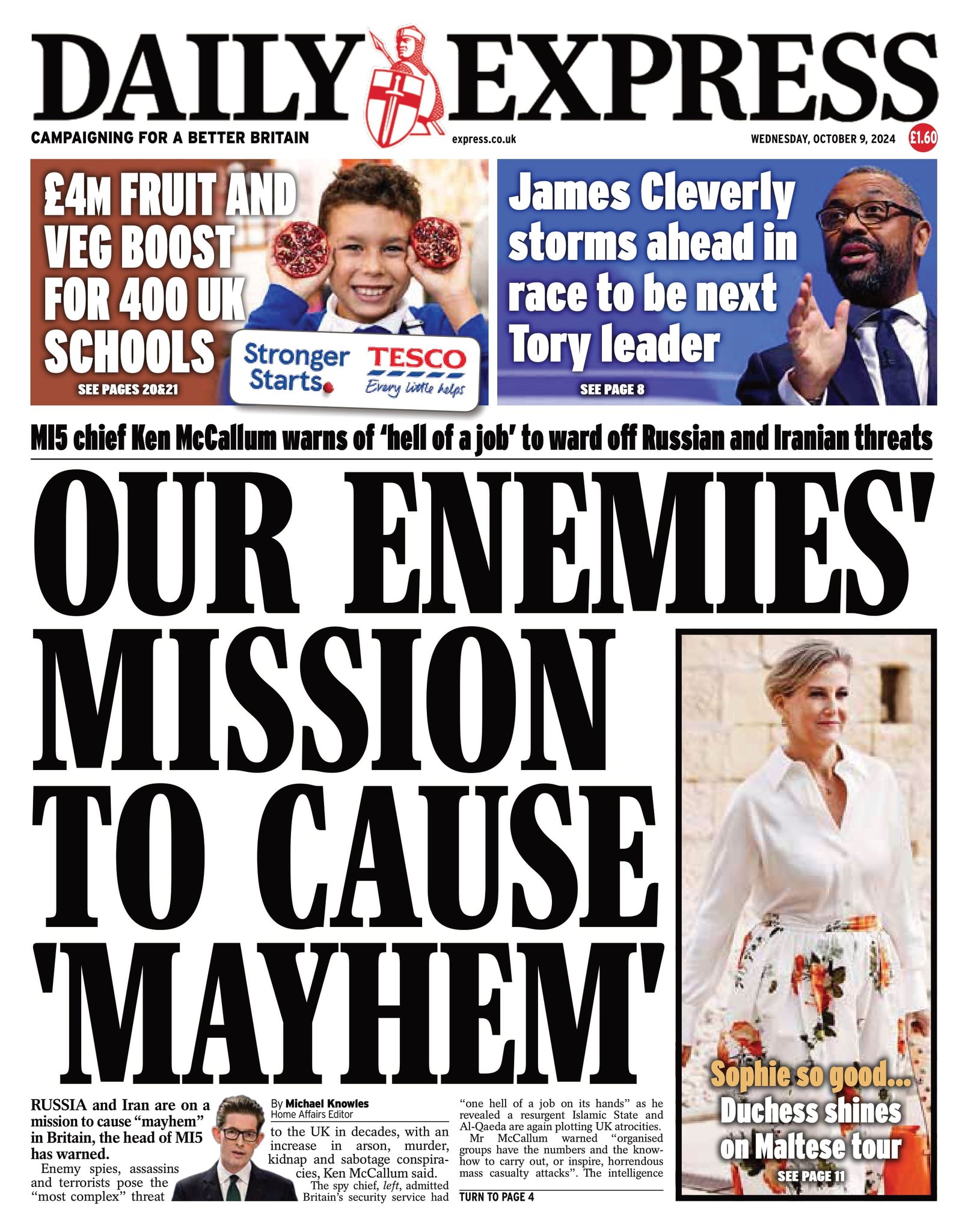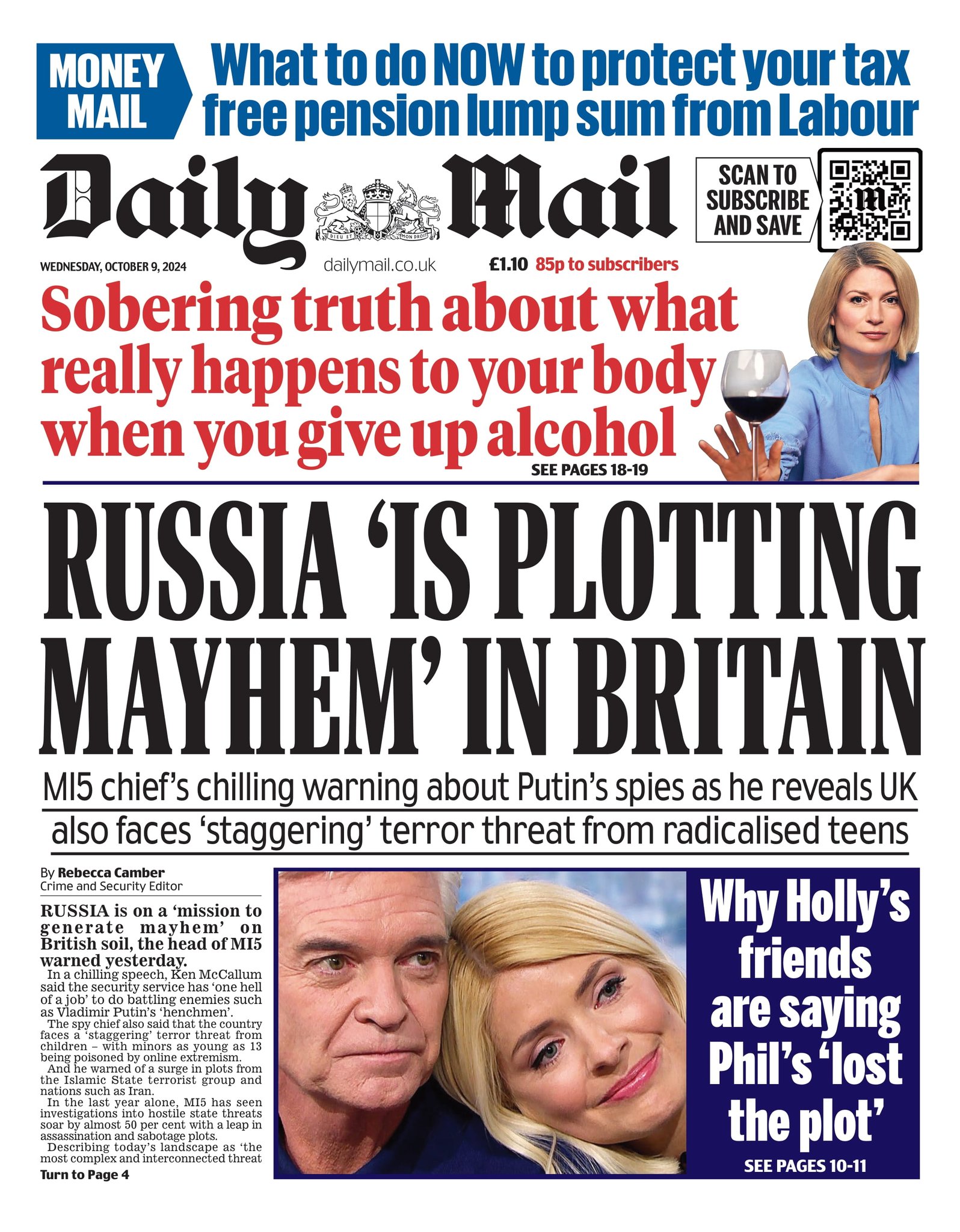 Daily Mirror Front Page 9th of October 2024