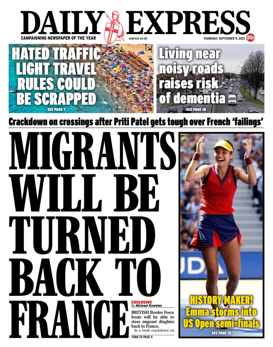 Border Force boats will steer migrants back to France, according to the Daily Express